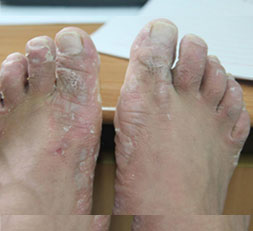 治疗前:脚部皮肤粗糙,并奇痒难忍。